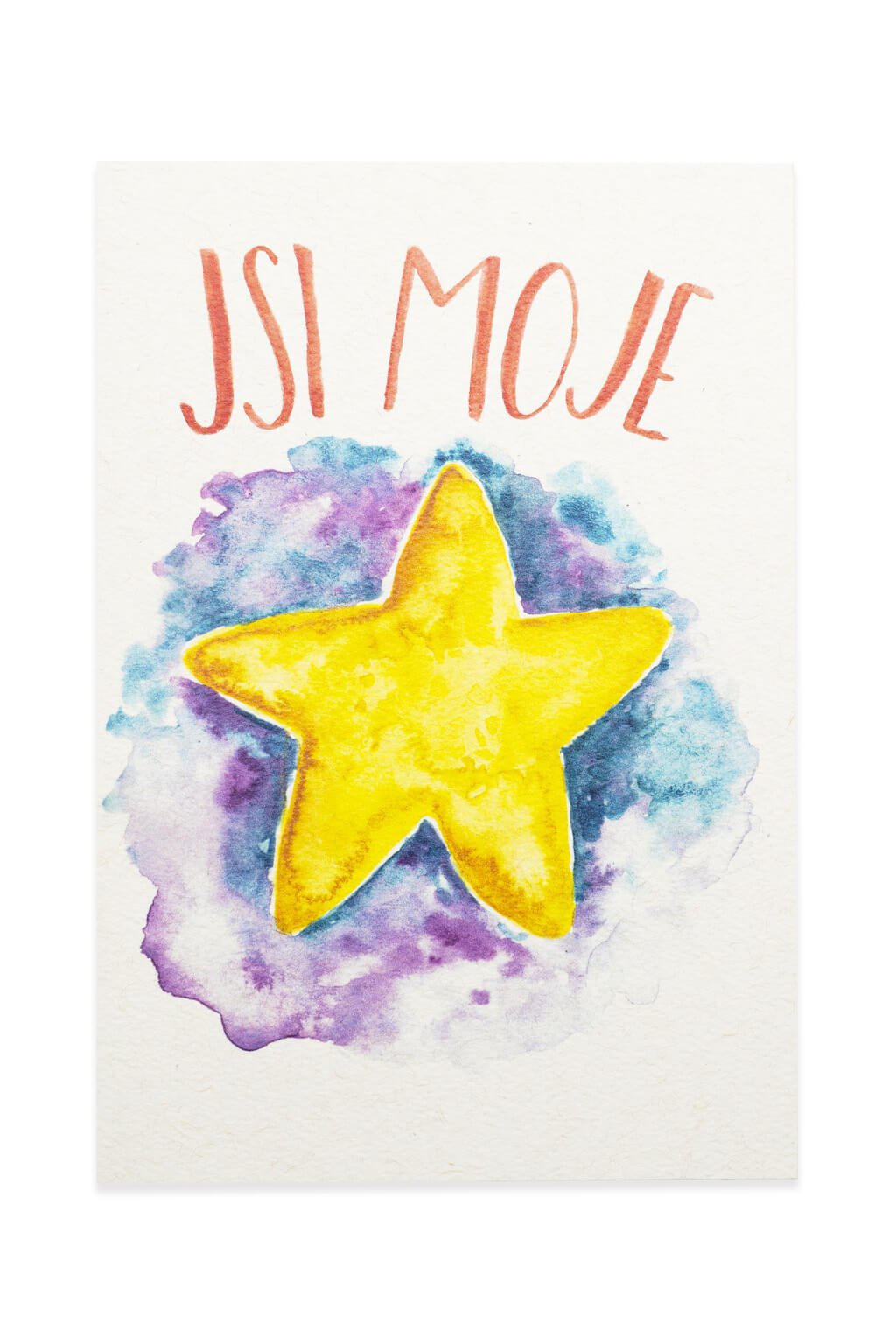 Přáníčko s autorskou ilustrací od Sandry Kocmanové. Uvnitř má přáníčko prázdné místo na vaše blahopřání.