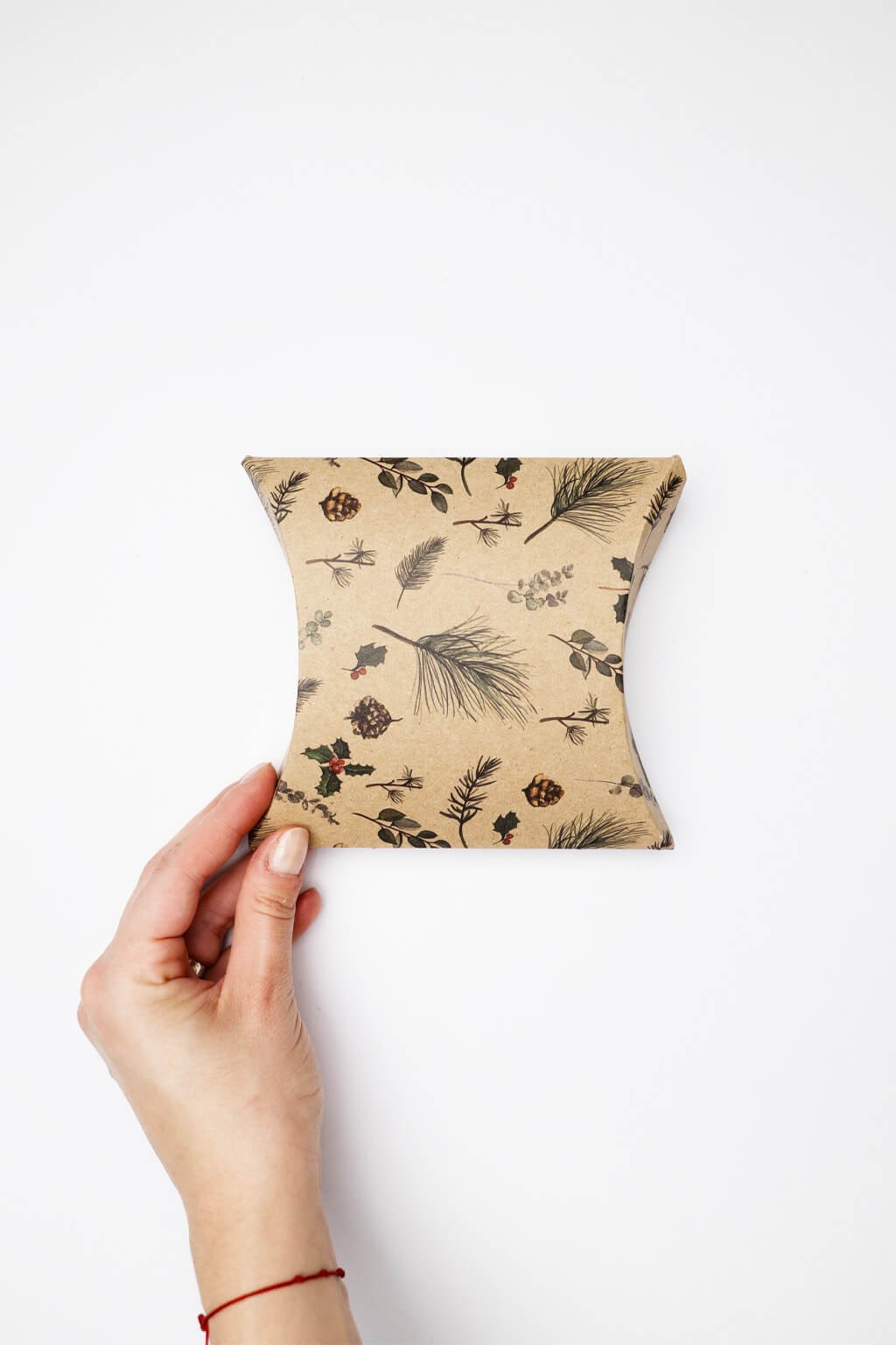 Krabička krásně drží tvar, takže není možné na první pohled odhadnout, jaký obsah ukrývá. Toto tajemství jen zvyšuje příjemné napětí typické pro vánoční čas. Design papíru šetrného vůči přírodě byl navržen kreslířkou Bárou z Nikolajky a pod stromečkem vypadá prostě báječně.