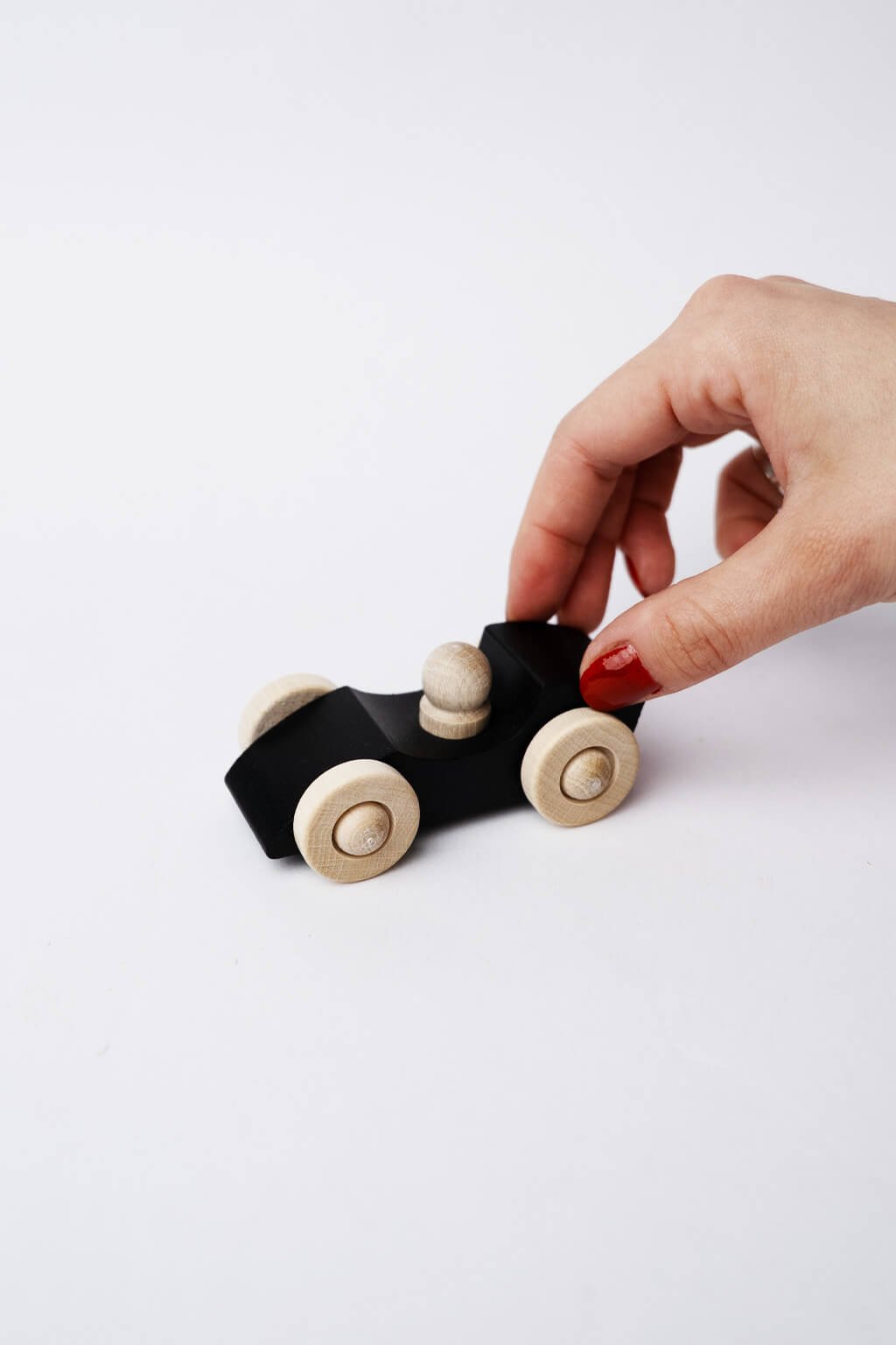 Závodní dřevěná formule, která si svým hravým designem a precizním zpracováním získá každého malého závodníka.