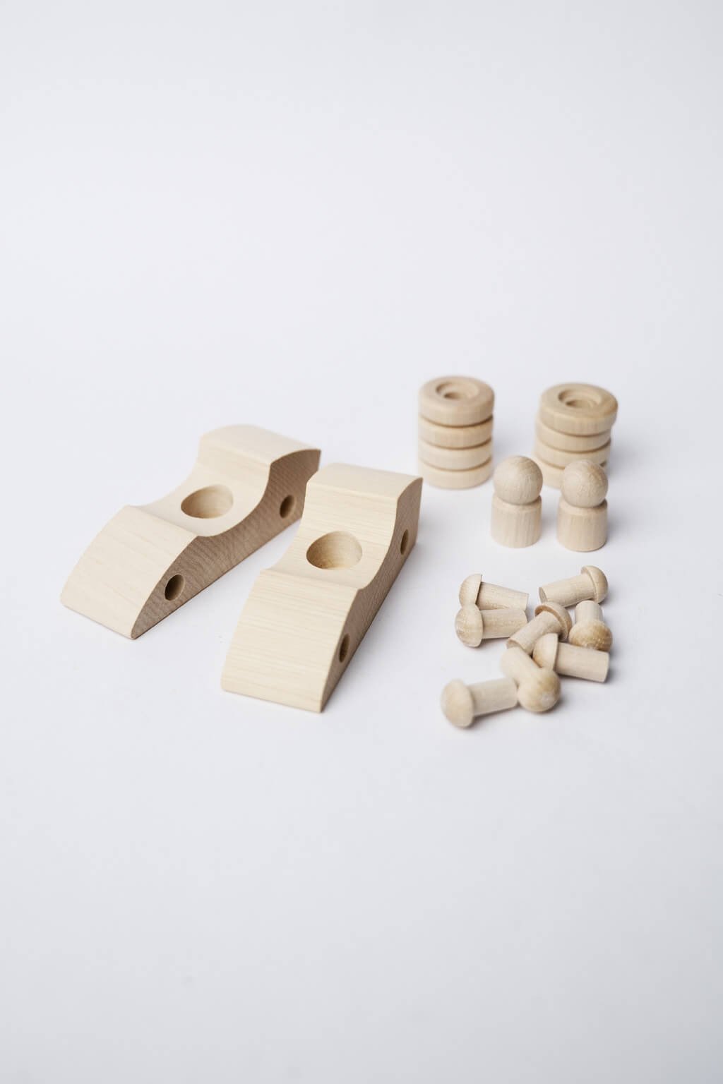 Sada obsahuje 20 dřevěných dílků pro výrobu 2 formulí.
