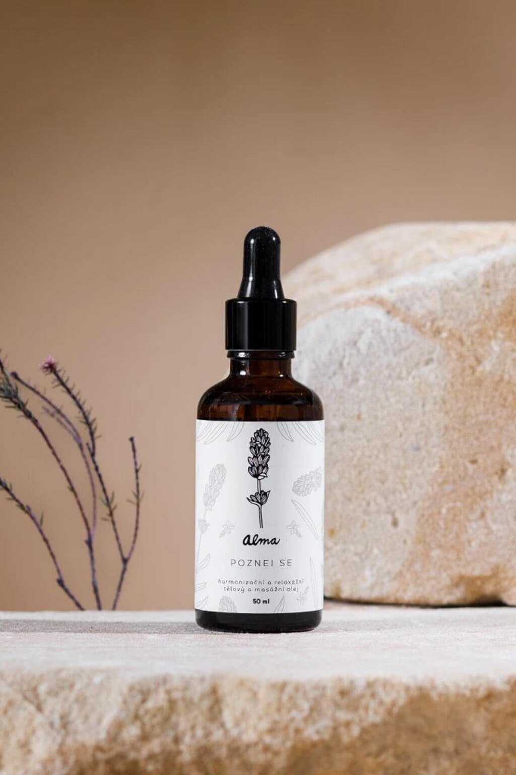 Olej je levandulí vonící průvodce do harmonické krajiny klidu a odpočinku. Při masáží vypíná zbytečné myšlenky, uvolňuje tělo a zároveň rozproudí lymfu díky esenci z jalovce. Díky extraktu levandule lékařské, který si v Almě sami tvoří podle starodávných receptur, má výrazné zklidňující a hojivé účinky.