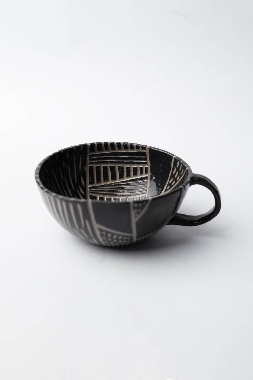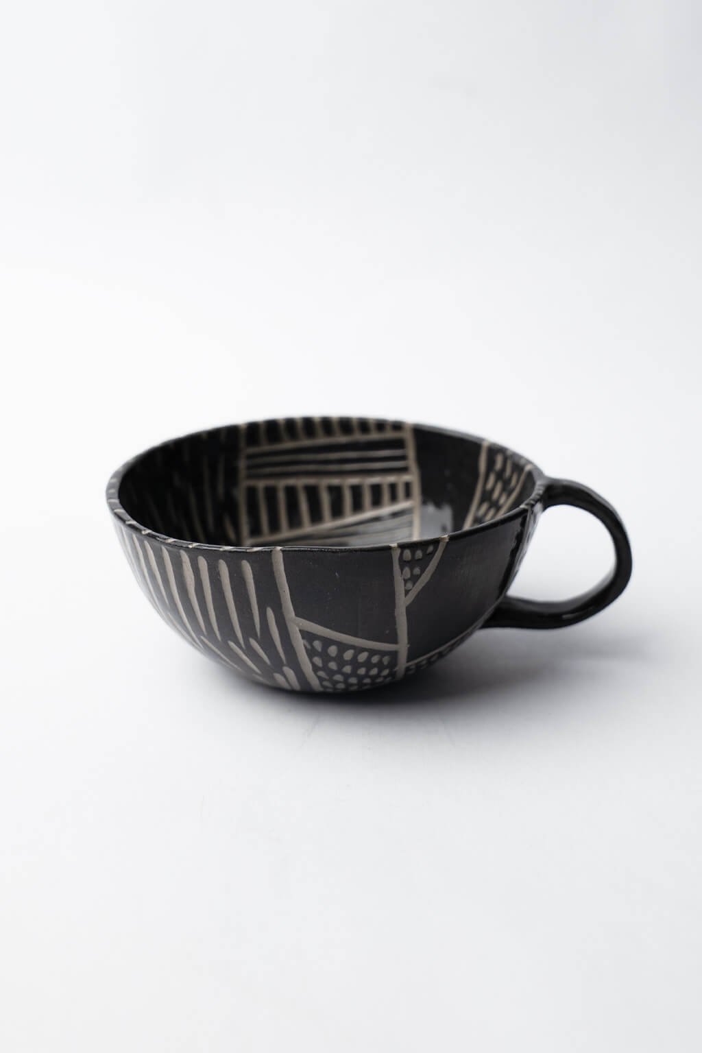 Malý, ale výrazný hrnek na espresso s ručně rytou sgrafito texturou – každý kus je originál. Jemně rytý povrch technikou sgrafito dělá z každého doušku malý rituál.
