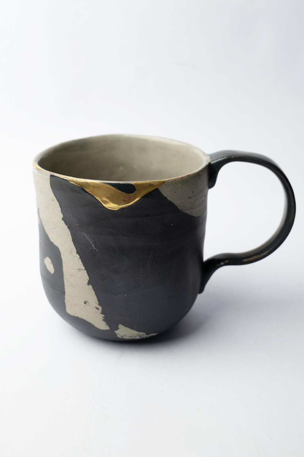 Keramický hrnek se zlatým dekorem přináší do každého dne dotek originality a vkusu. Elegantní kombinace zlata a tmavých barev dodává pocit klidu a luxusu. Hrnek je vyroben z kvalitní keramiky, což zaručuje příjemný pocit při držení a dlouhou životnost.