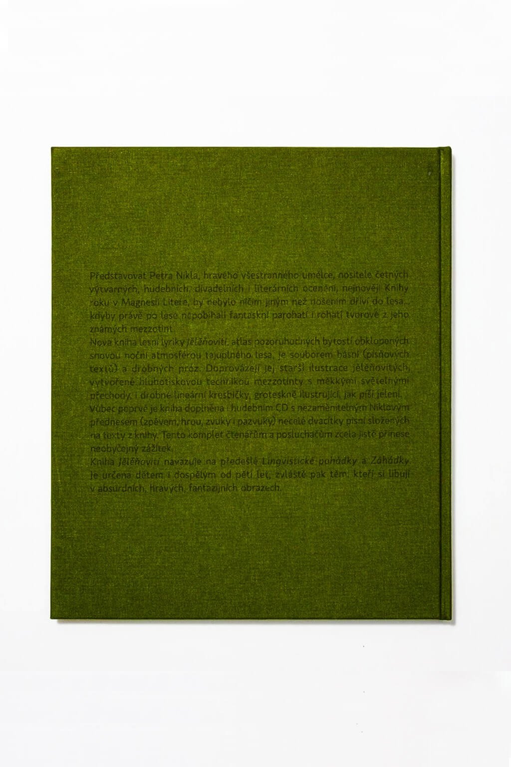 Doprovázejí jej starší ilustrace jělěňovitých, vytvořené hlubotiskovou technikou mezzotinty s měkkými světelnými přechody, i drobné lineární kresbičky groteskně ilustrující, jak píší jeleni. Kniha je doplněna i hudebním CD s nezaměnitelným Niklovým přednesem (zpěvem, hrou, zvuky i pazvuky) necelé dvacítky písní složených na texty z knihy. Tento komplet čtenářům a posluchačům zcela jistě přinese neobyčejný zážitek. Kniha Jělěňovití navazuje na předešlé Lingvistické pohádky a Záhádky. Je určena dospělým i dětem od pěti let, zvláště pak těm, kteří si libují v absurdních, hravých a fantazijních obrazech.
