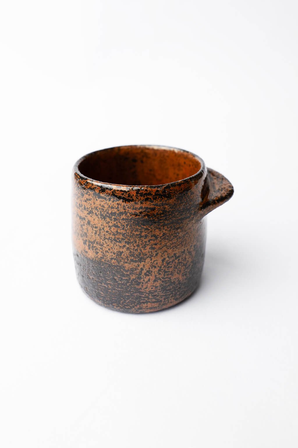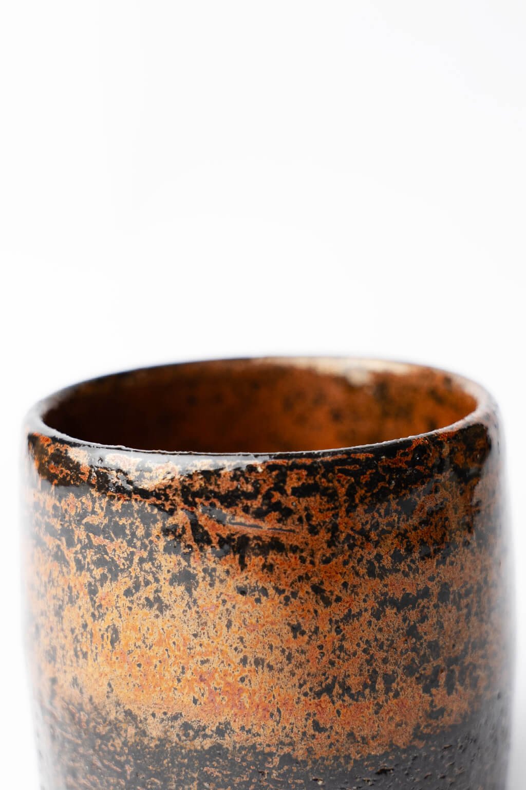 Kropenatý kalíšek zaujme svým promáčklým tvarem, který dokonale padne do ruky. Jeho povrch zdobí jemně stékající glazura, která krásně kontrastující s přírodním hliněným základem. Jednoduchý, ale výrazný design pro radost z každého doušku.