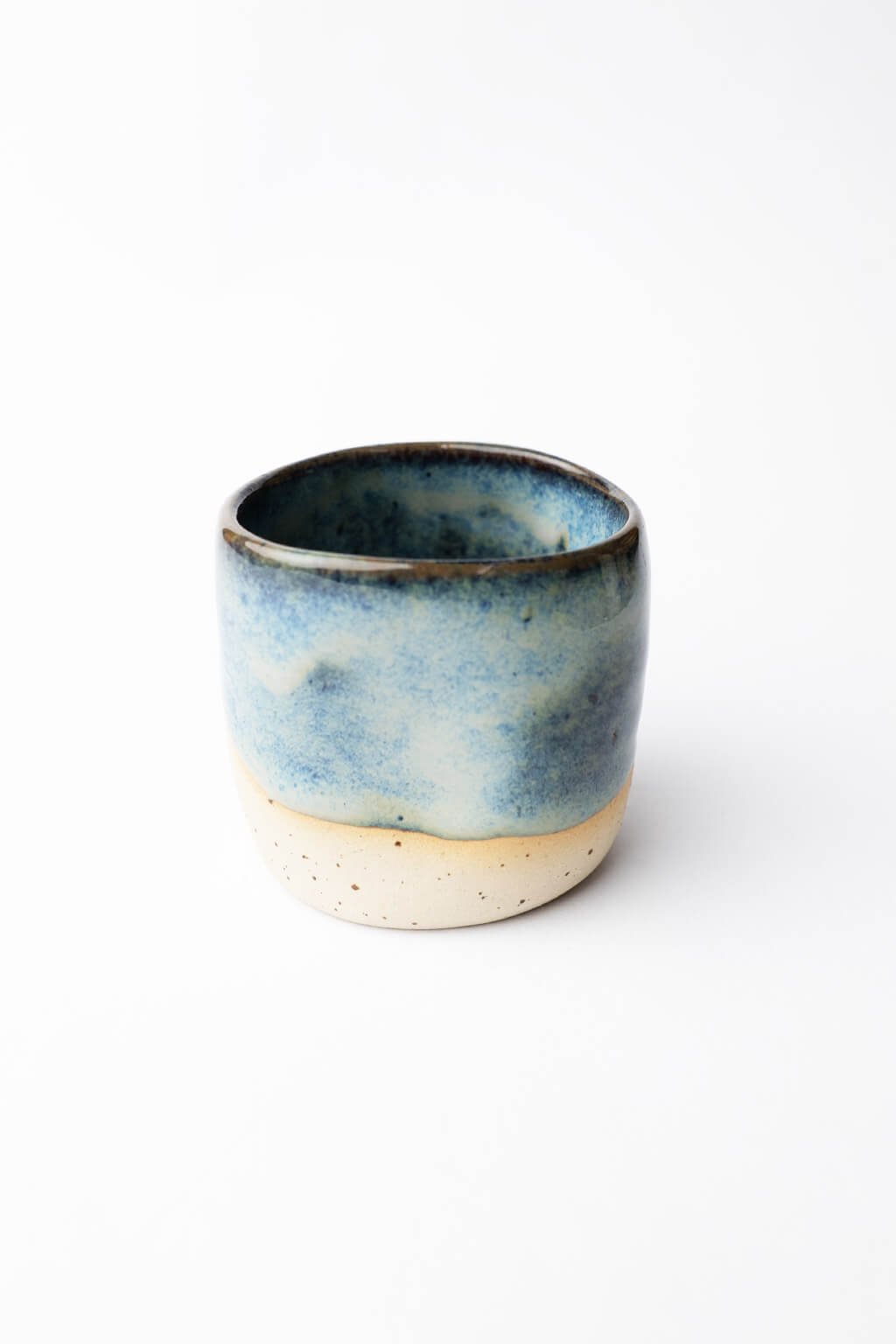 Tento malý keramický kalíšek je ideální pro vychutnání kávy nebo čaje a přinese jedinečný zážitek z každého doušku. Díky promáčklému designu skvěle padne do ruky a nabízí pohodlné uchopení. Jeho povrch zdobí jemně stékající kropenatá světlá glazura, která vytváří originální a přirozený vzhled.