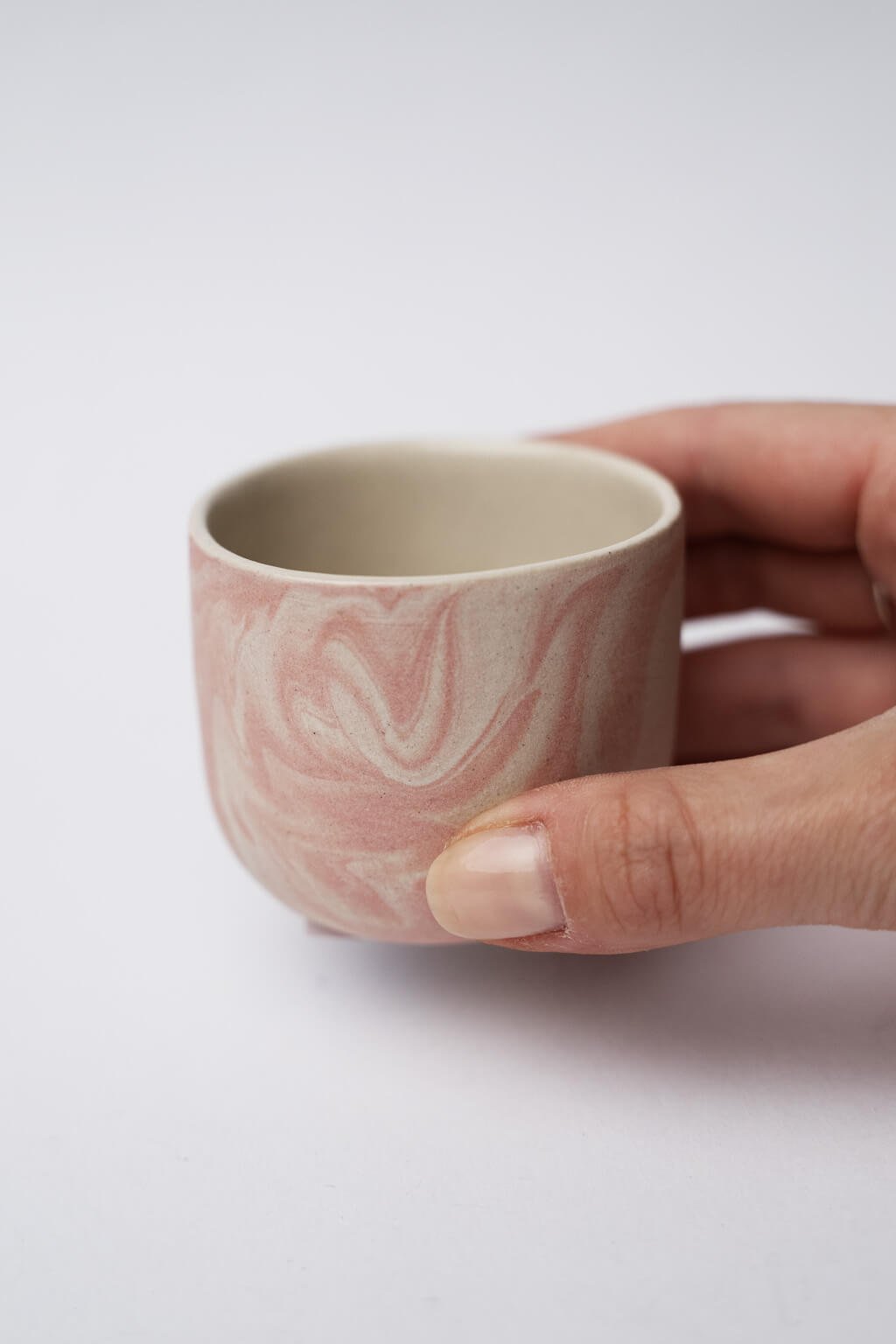 Stylový keramický kelímek na espresso s matnou béžovo-růžovou glazurou od Moo Ceramics zaujme na první pohled.