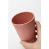 Keramický kelímek s něžnou matnou růžovou glazurou a jedinečnou vroubkovanou texturou přináší do každého dne dotek originality a vkusu. Lesklý vnitřek hrnku působí luxusně a umožňuje snadné umývání. Hrnek je vyroben z kvalitní keramiky, což zaručuje příjemný pocit při držení a dlouhou životnost.