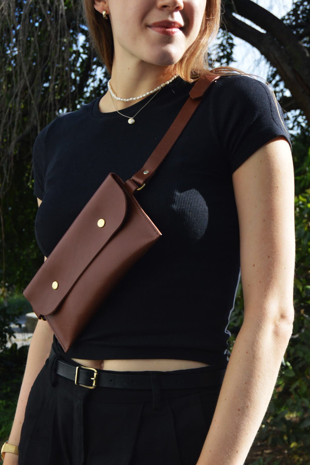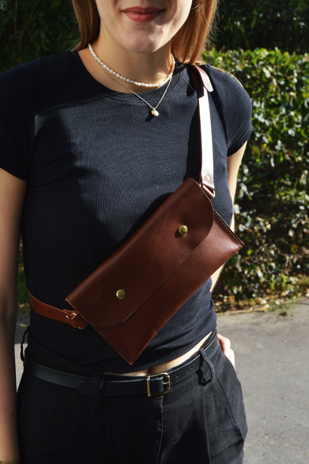 Ledvinka také dokonale doplní váš outfit. Díky nastavitelnému plochému řemínku s nerezovou přezkou můžete ledvinku Dafné nosit pohodlně u pasu nebo šikmo přes záda.