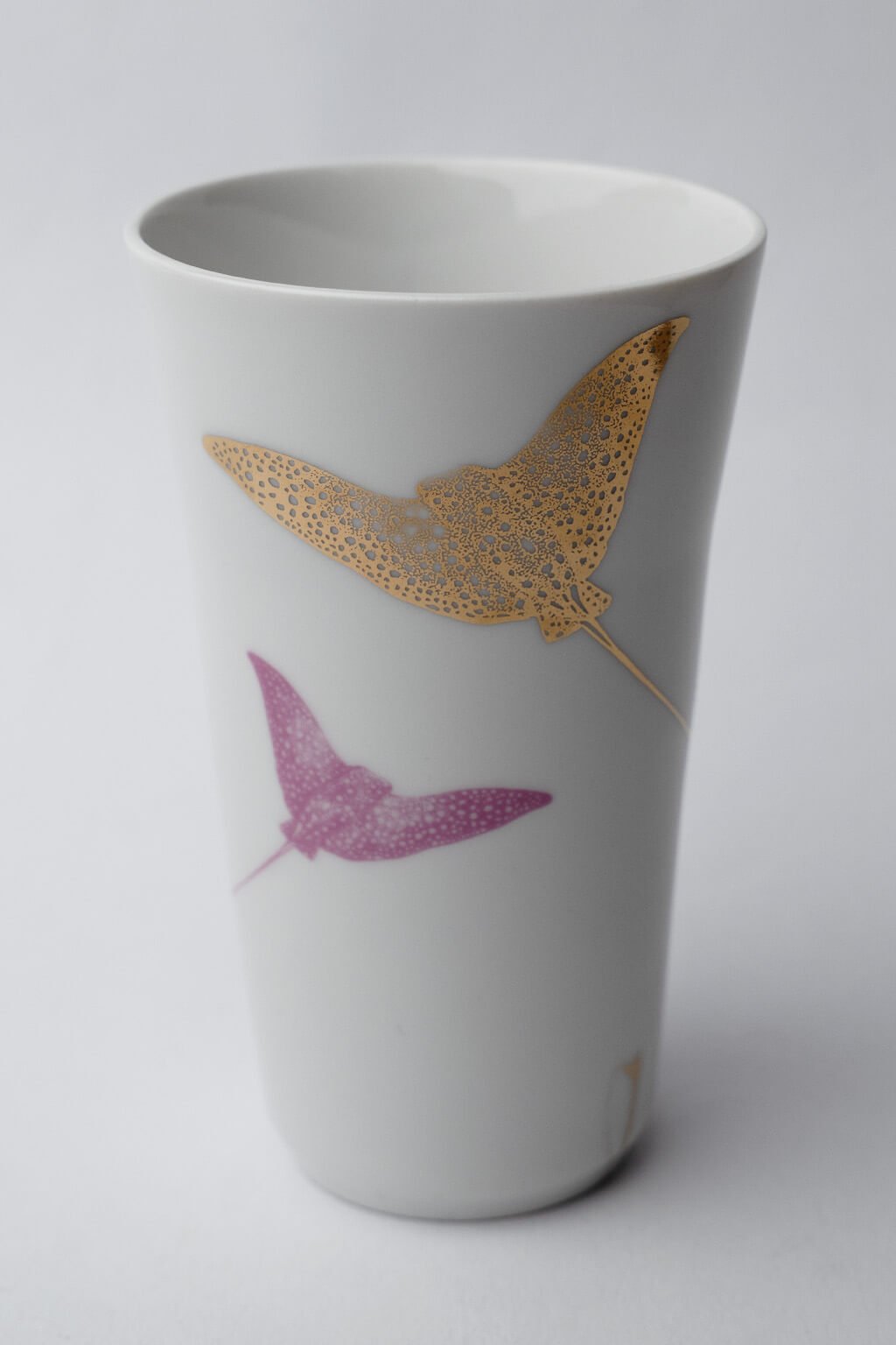 Porcelánový kalíšek na latte s rejnoky a zlato-růžovými detaily je elegantním doplňkem pro milovníky kávy a designu. Jeho sofistikovaný vzhled ocení ti, kteří hledají styl i funkčnost v každodenním rituálu. Ideální jako dárek pro ty, kdo mají smysl pro detail a kvalitu.