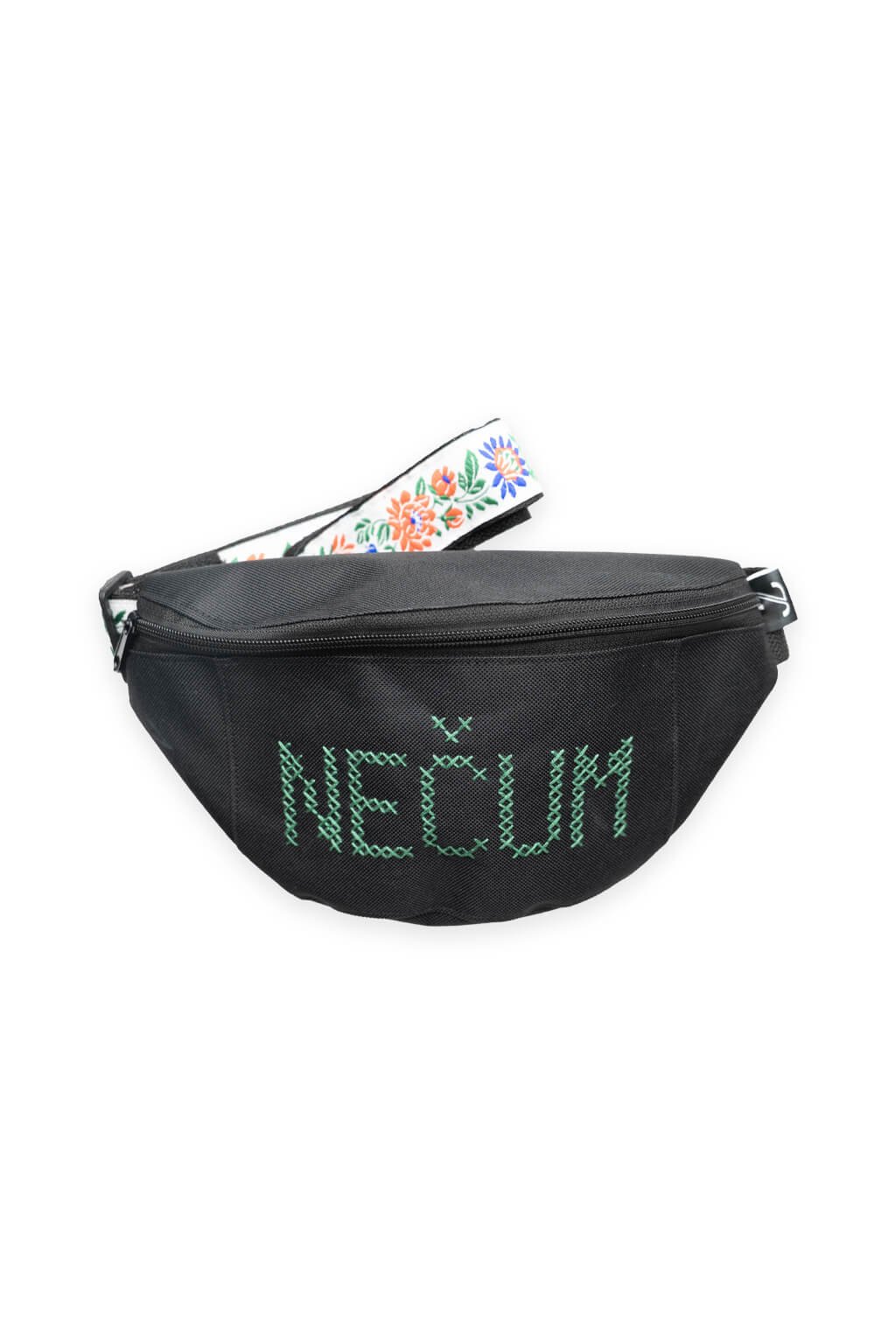 Ledvinka Nečum černá | bílý popruh, zelený nápis