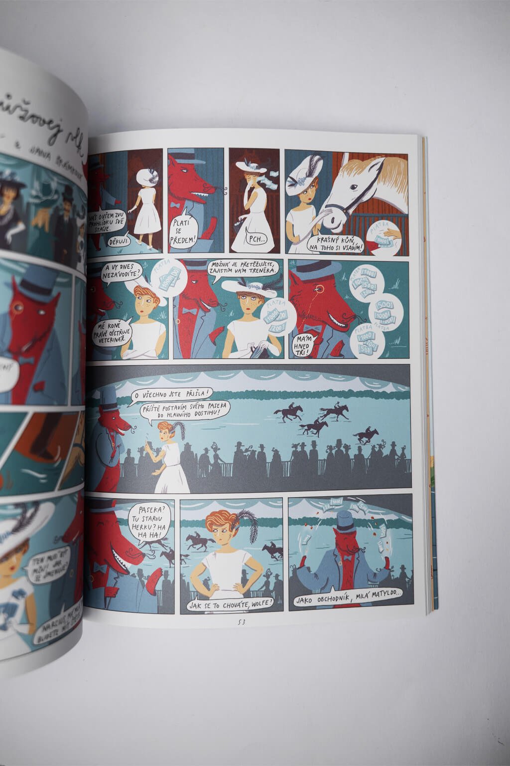 Matylda je holka jako každá jiná. Teda skoro – má totiž doma Růžovýho Vlka, co mluví, bydlí na hausbótu a miluje chlebíčky. V tomhle parťáctví není nouze o akci, humor ani zvláštní dobrodružství: piráti, filmový festival, kanály i polární vlčice. Komiksový příběh plný fantazie a přátelství vychází poprvé celý v knižní podobě – včetně bonusu o tom, jak to všechno začalo.