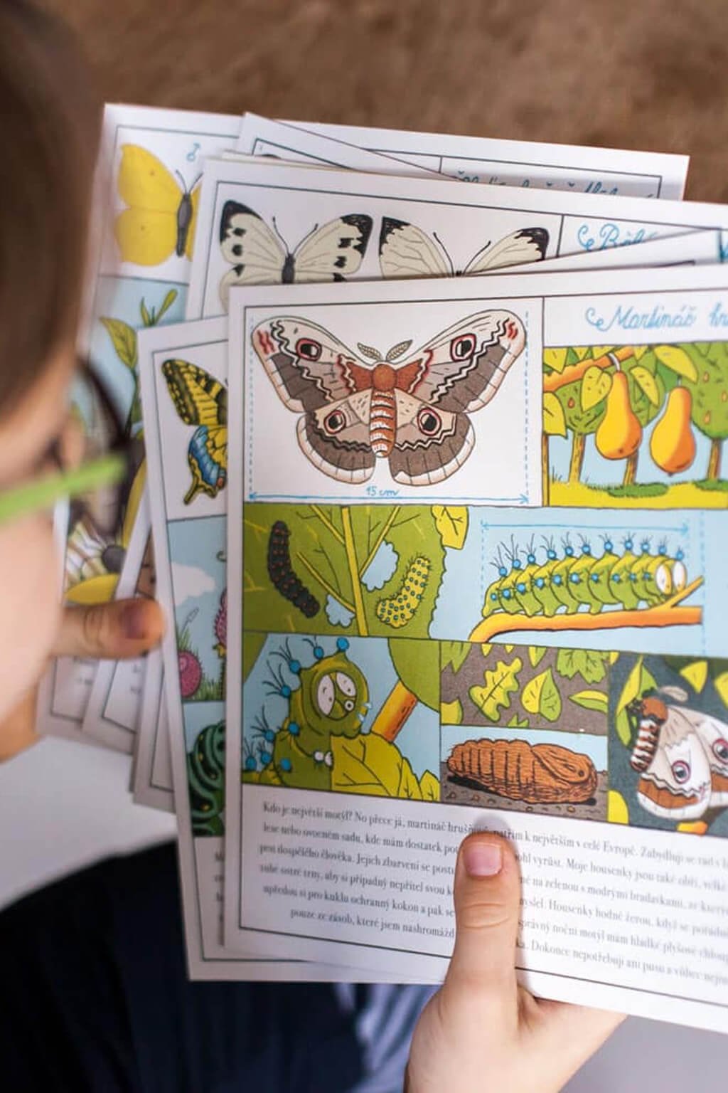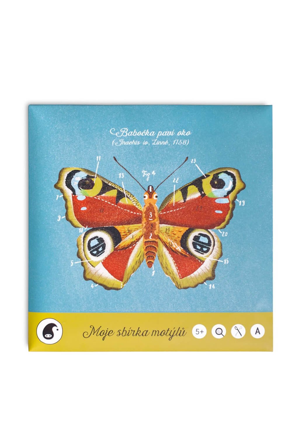 V této kreativní sadě naleznete 6 poznávacích karet k dotvoření s komiksem na zadní straně. Na kartách jsou tito motýli: lišaj smrtihlav, martináč hrušňový, otakárek fenyklový, babočka paví oko, bělásek zelný a žluťásek řešetlákový. Balení navíc obsahuje vyobrazení motýlů ve skutečné velikosti, z nichž je možné vytvořit vlastní sbírku motýlů. Vhodné pro děti od 5-ti let.