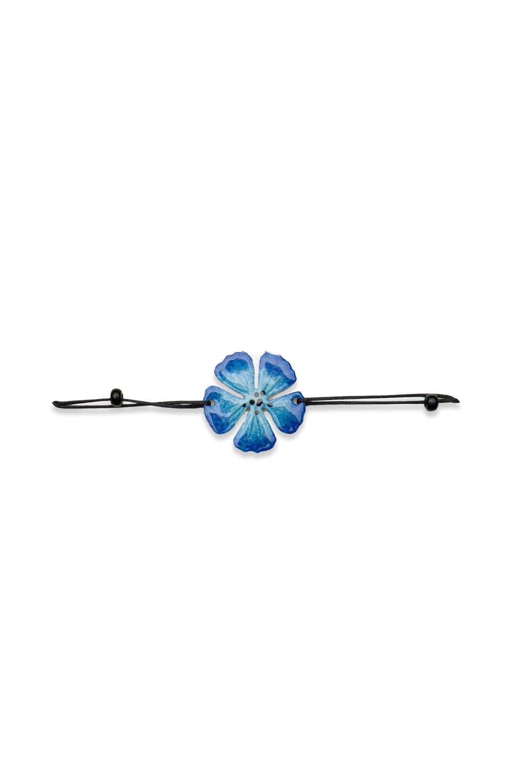 Tento šňůrkový náramek se smaltovaným přívěskem květu lnu je stylovým a originálním doplňkem, který zaujme každého.