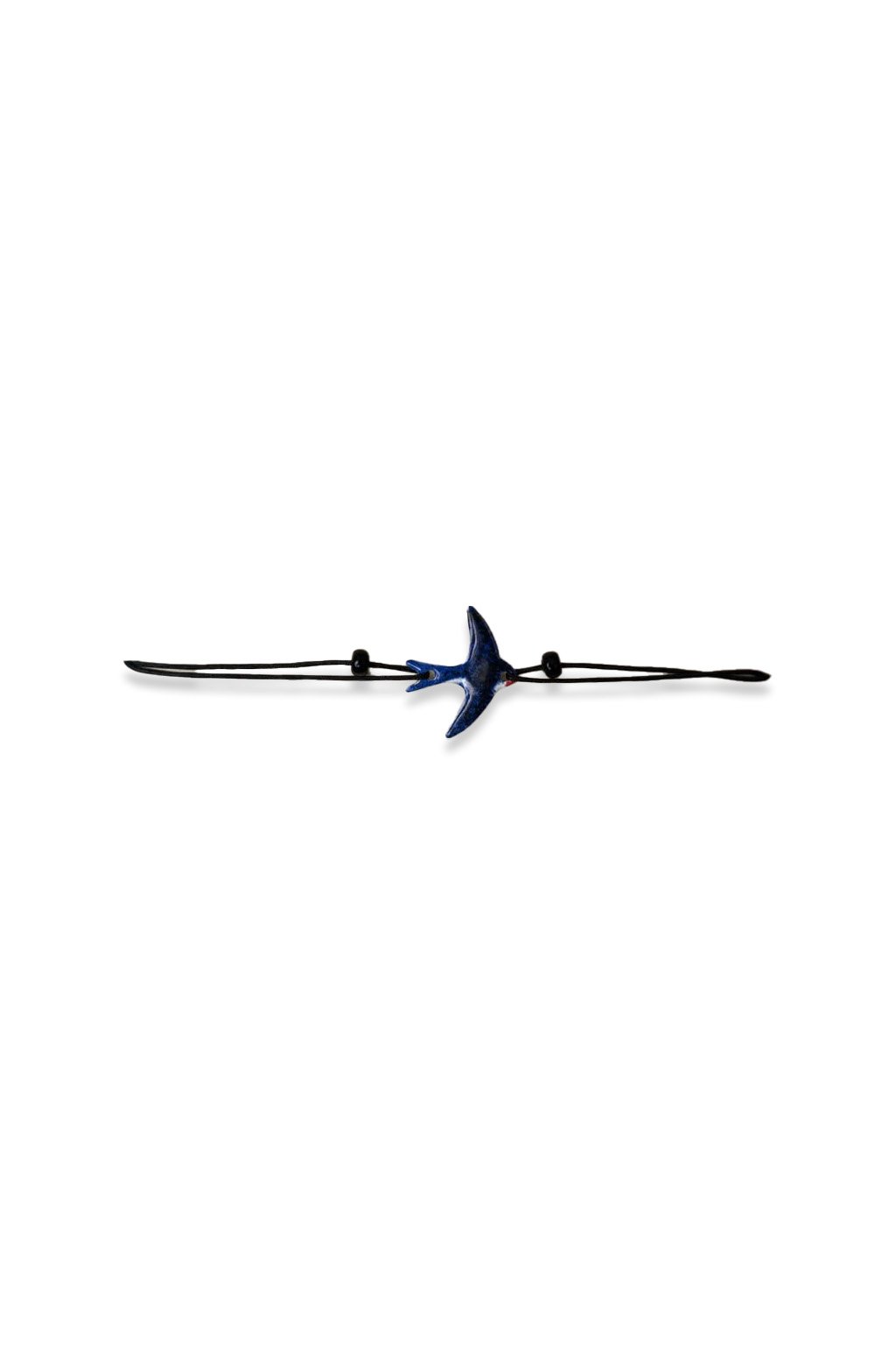 Smaltovaný přívěsek v podobě vlaštovky je ručně malovaný a dodává náramku jedinečný, veselý vzhled. Šňůrka je jemná, pohodlná a nastavitelná, což zajišťuje perfektní padnutí na zápěstí.