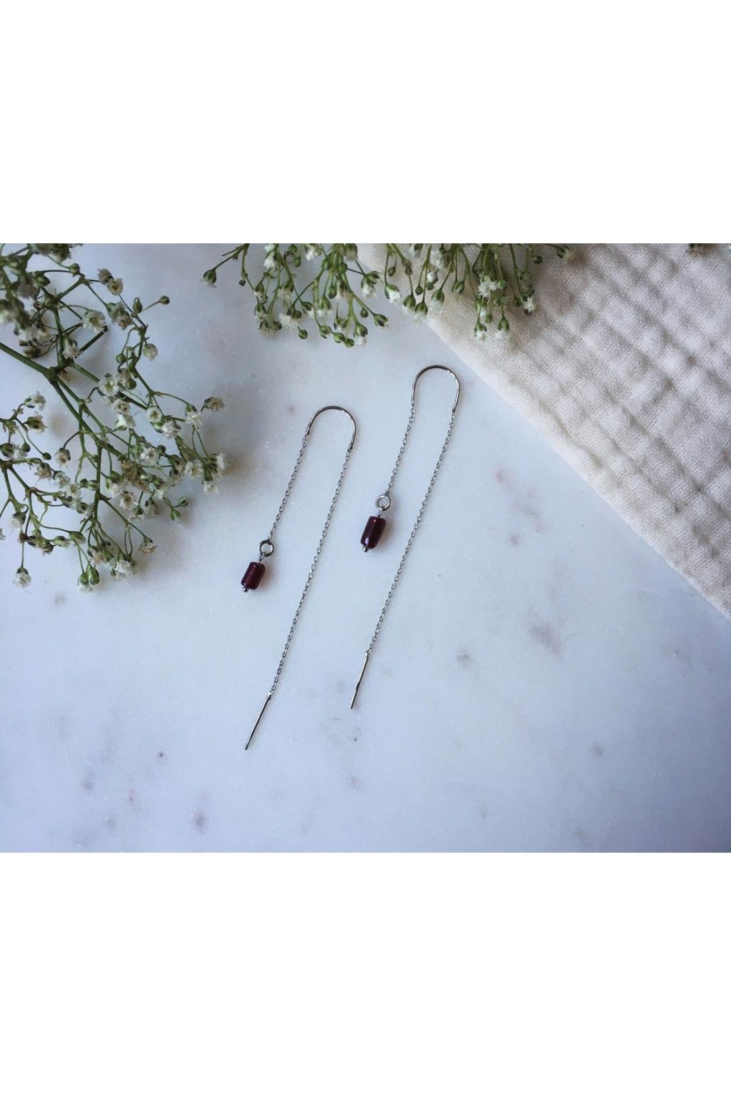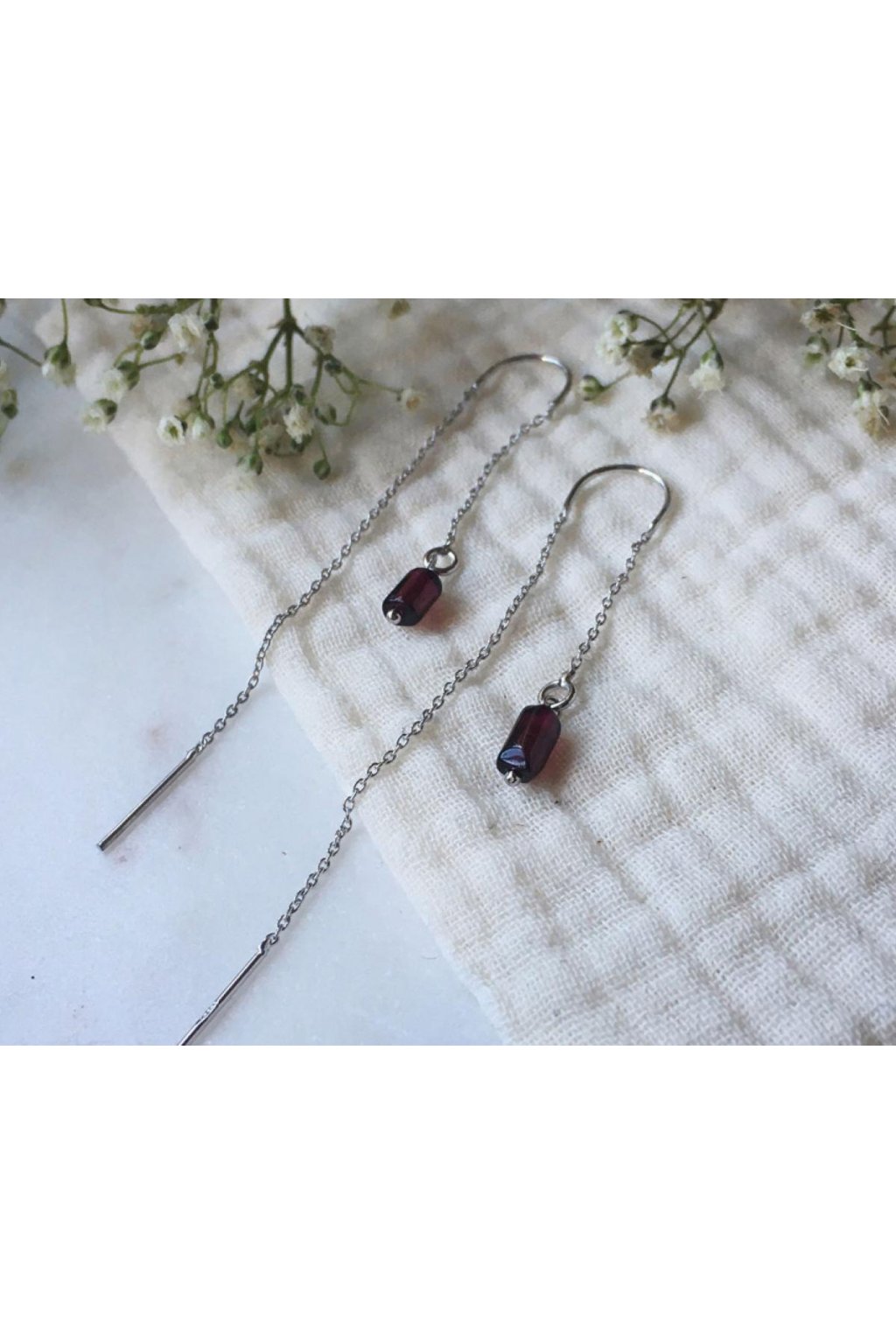 Náušnice z rhodiovaného stříbra Ag 925/1000 s granátem. Granát má silnou schopnost dodávat energii. Zvyšuje vitalitu a chuť do života.
