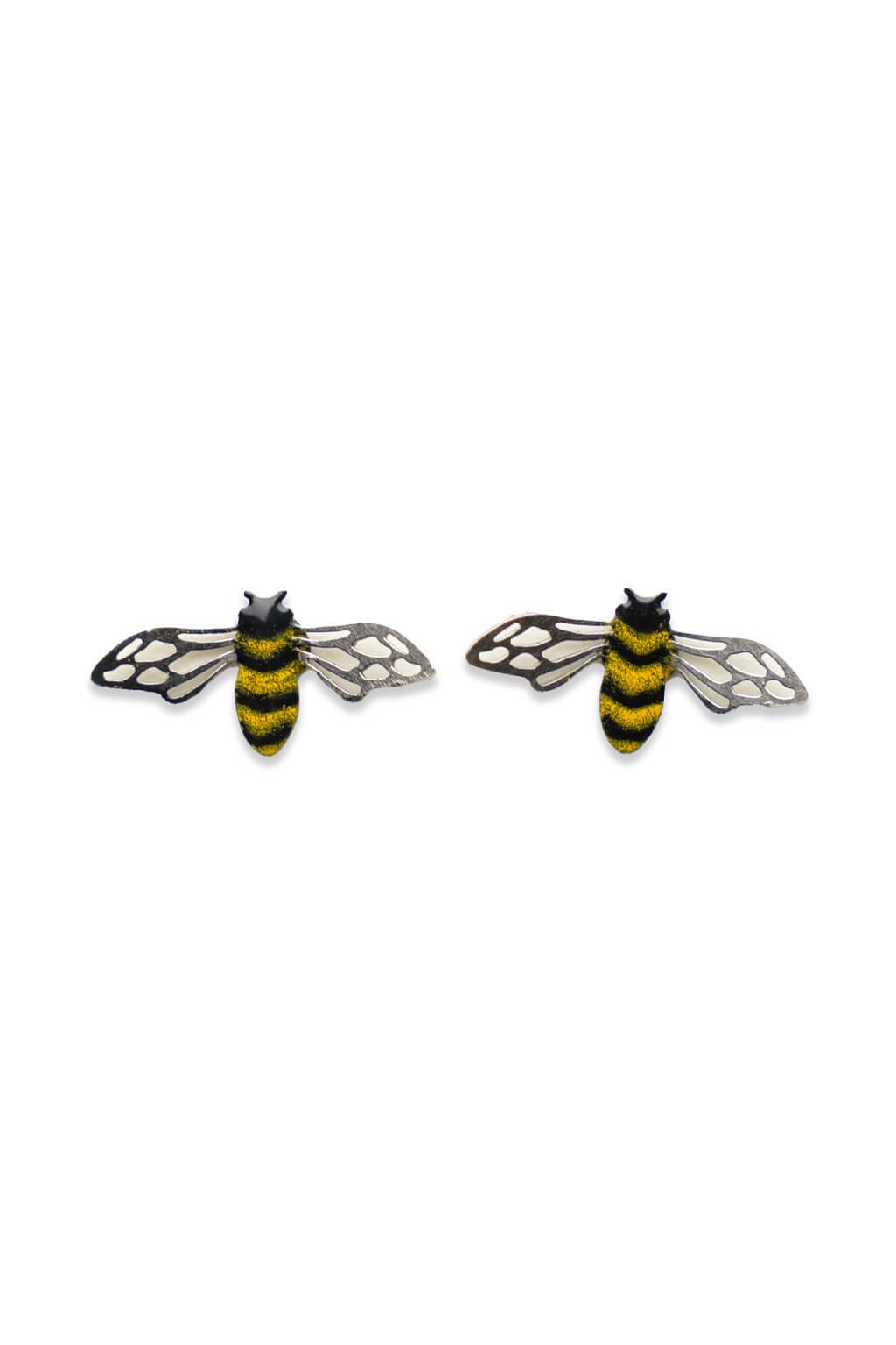 Krásné ručně malované puzety s motivem včel jsou zasazeny do smaltované nerezové oceli. Jejich jemný design je lehký a pohodlný, ideální pro každodenní nošení. Puzeta je pevně připevněná k základně pro trvalé spojení a součástí jsou zapínací špuntíky.