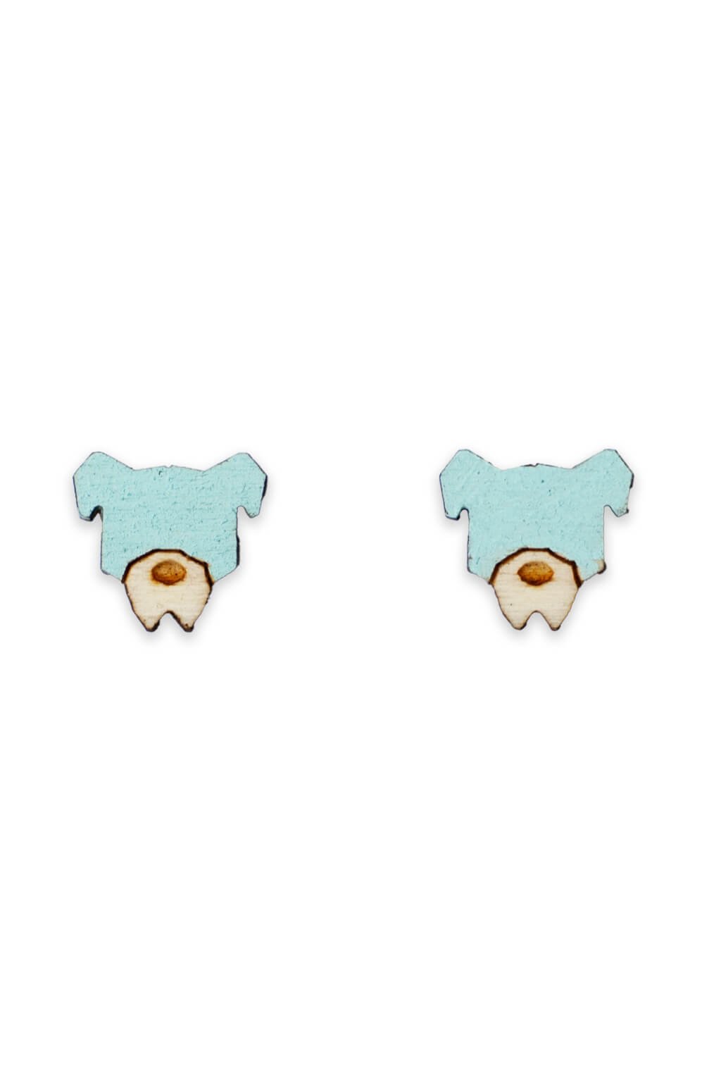 Jemné dřevěné náušničky od značky Alizi Design, které kombinují hravé tvary s jednoduchým designem. Tyto náušničky jsou ručně malované akrylovými barvami a doplněné puzetami z chirurgické oceli, cožpodtrhuje jejich kvalitu.