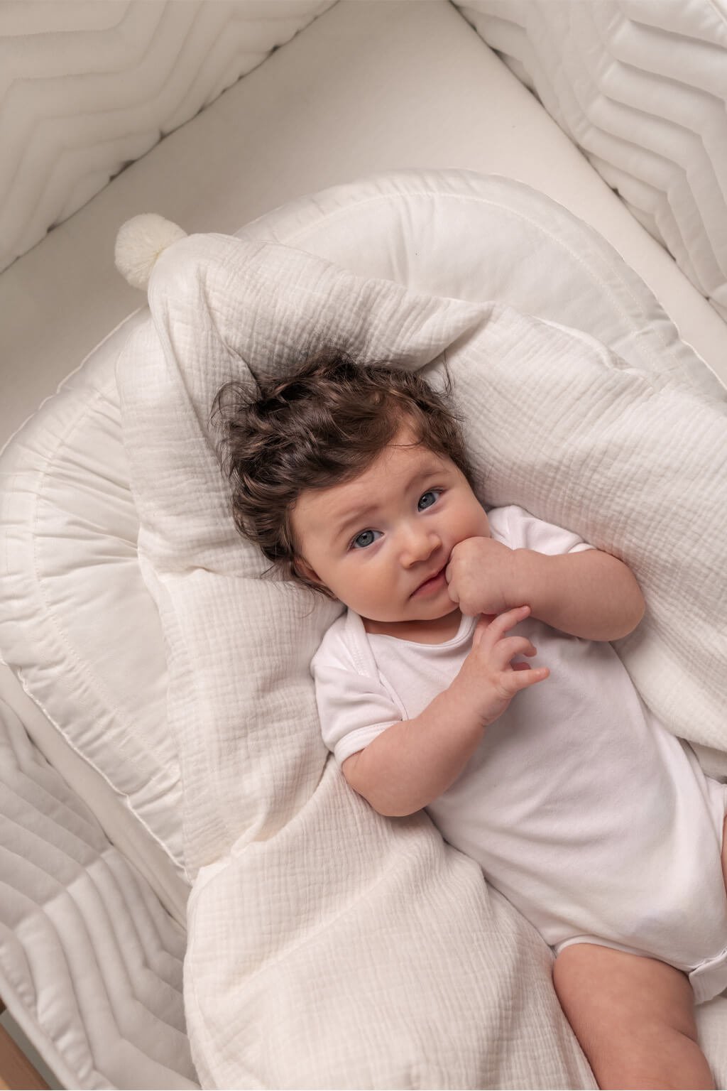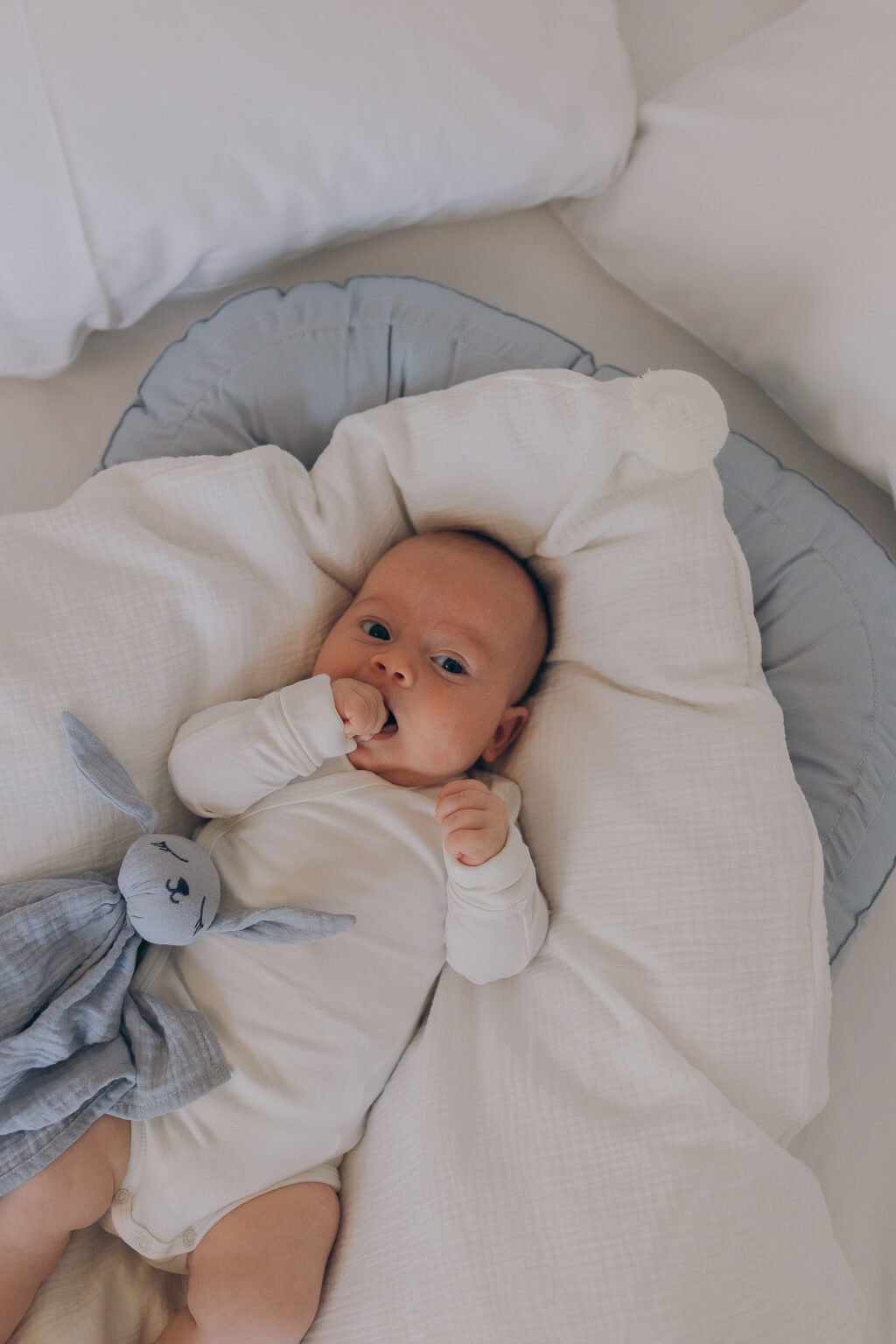 Zavinovačka, která podpoří správnou polohu miminka a zajistí mu pohodlí doma i na cestách. Díky šňůrkám se snadno utahuje a rozvazuje, hodí se do kočárku, kolébky i Mimi hnízda. Ušitá v Česku z biobavlněného mušelínu a vyplněná českým husím peřím. Certifikace GOTS a OEKO-TEX zaručují kvalitu i šetrnost k přírodě.