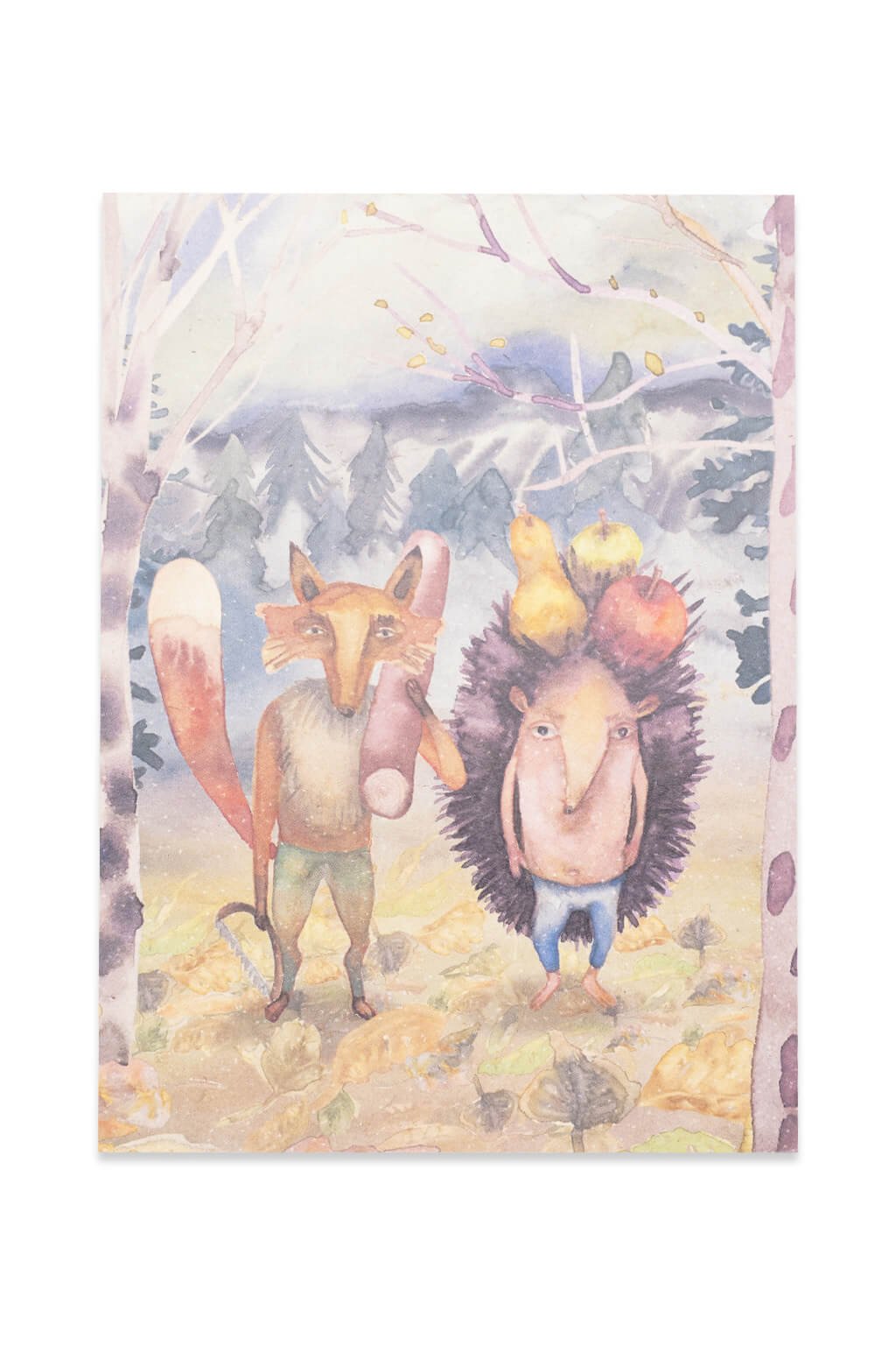 - Jemná akvarelová malba na ručním papíře.