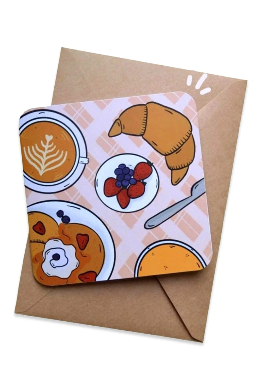 Stylové přáníčko s brunch tématikou je ideální pro všechny milovníky pomalých rán, dobré kávy a sladkých i slaných dobrot. Jemný design inspirovaný brunch atmosférou dodá vašemu přání hravost i eleganci – perfektní jako doplněk k dárku nebo milé překvapení jen tak pro radost.