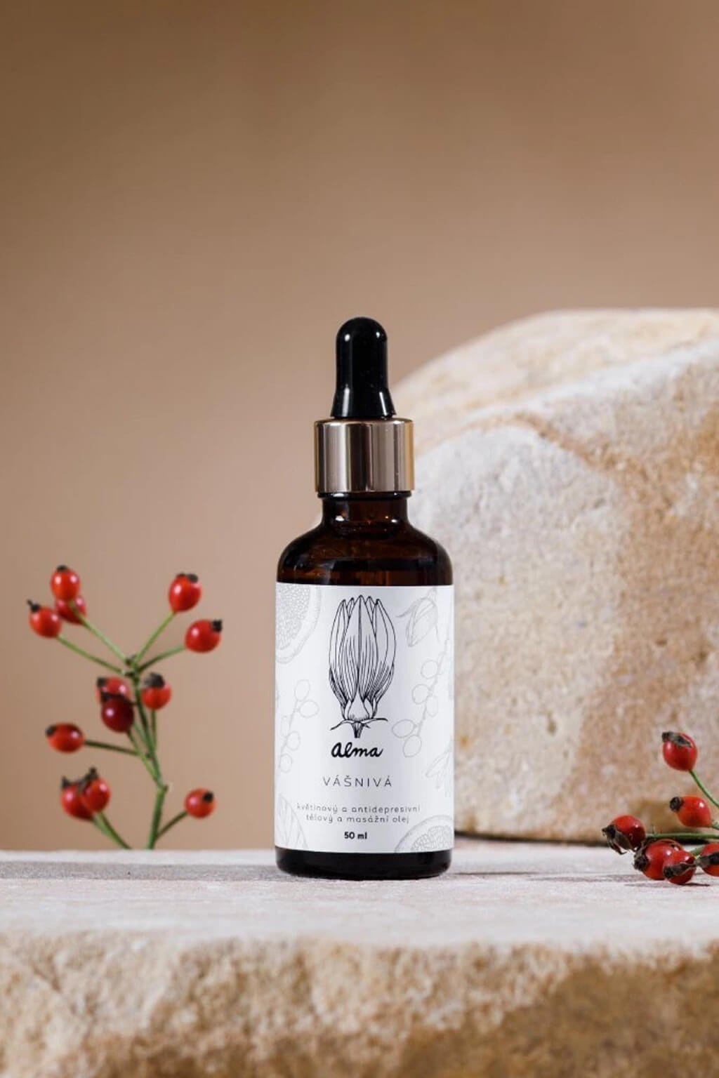Olej s opojnou květinovou vůní stvořený pro smyslnou ženu. Je skvělým pomocníkem na první vrásky, na drobné jizvičky a strie díky anti-age olejům - šípkovému, který je plný vitamínu C a arganovému, kterému se přezdívá marocké zlato. Spolu s extraktem růže také přirozeně podporují kůži ke tvorbě kolagenu.