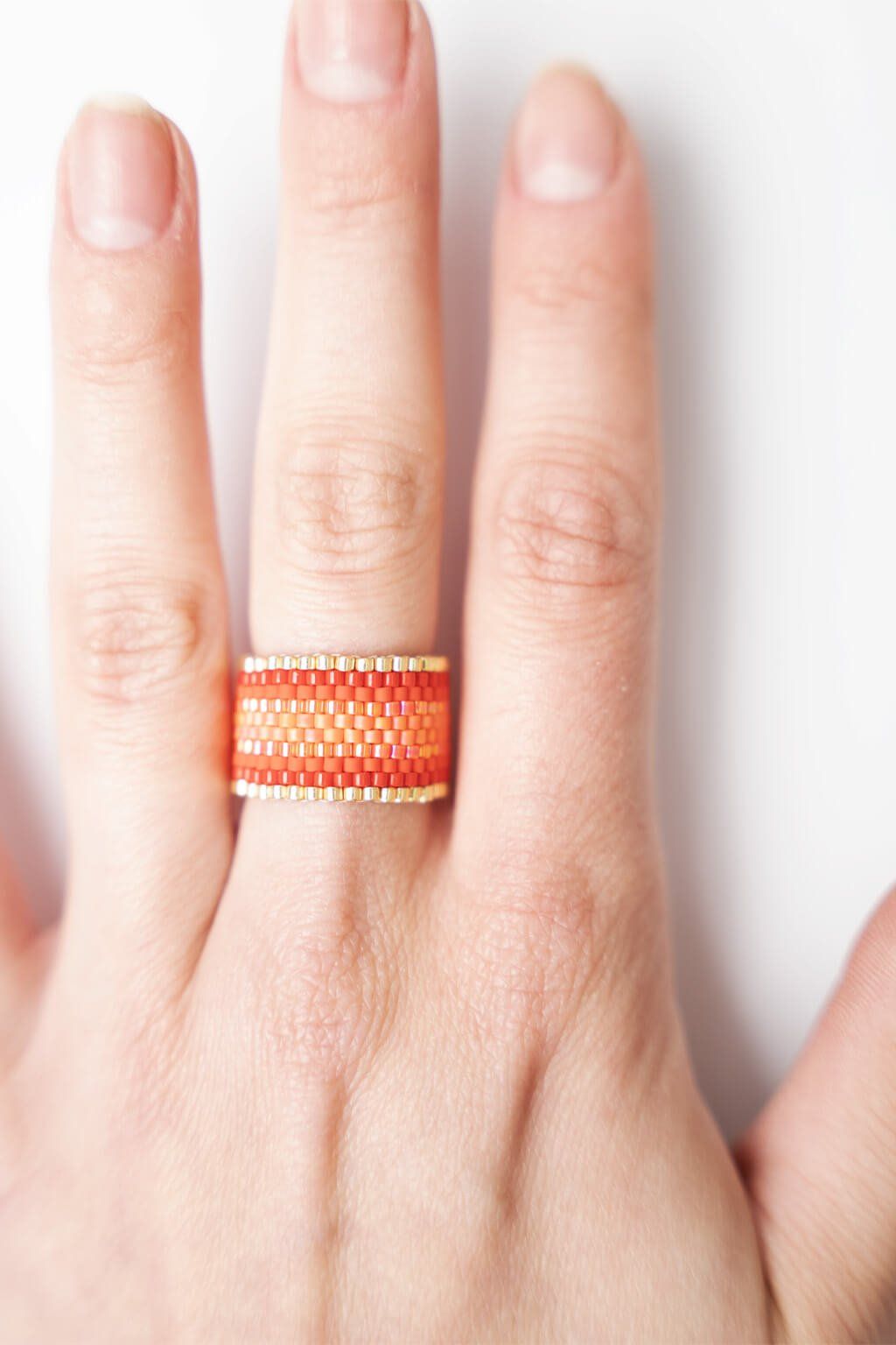 Prstýnek je ručně šitý z kvalitních japonských korálků. Krásný něžný doplněk, který vypadá na ruce opravdu nádherně, zaujme na první pohled a dodá eleganci každému outfitu.
