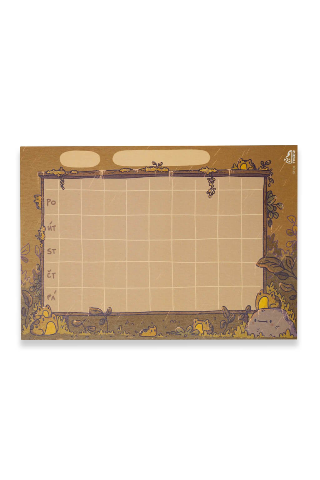 Tento rozvrh s veselými žabkami v dešti vám pomůže mít přehled o všech vyučovacích hodinách a kroužcích hodinách. Lehce přenosný formát se hodí do sešitu, na stůl i na nástěnku a každý pohled na něj vás rozveselí.