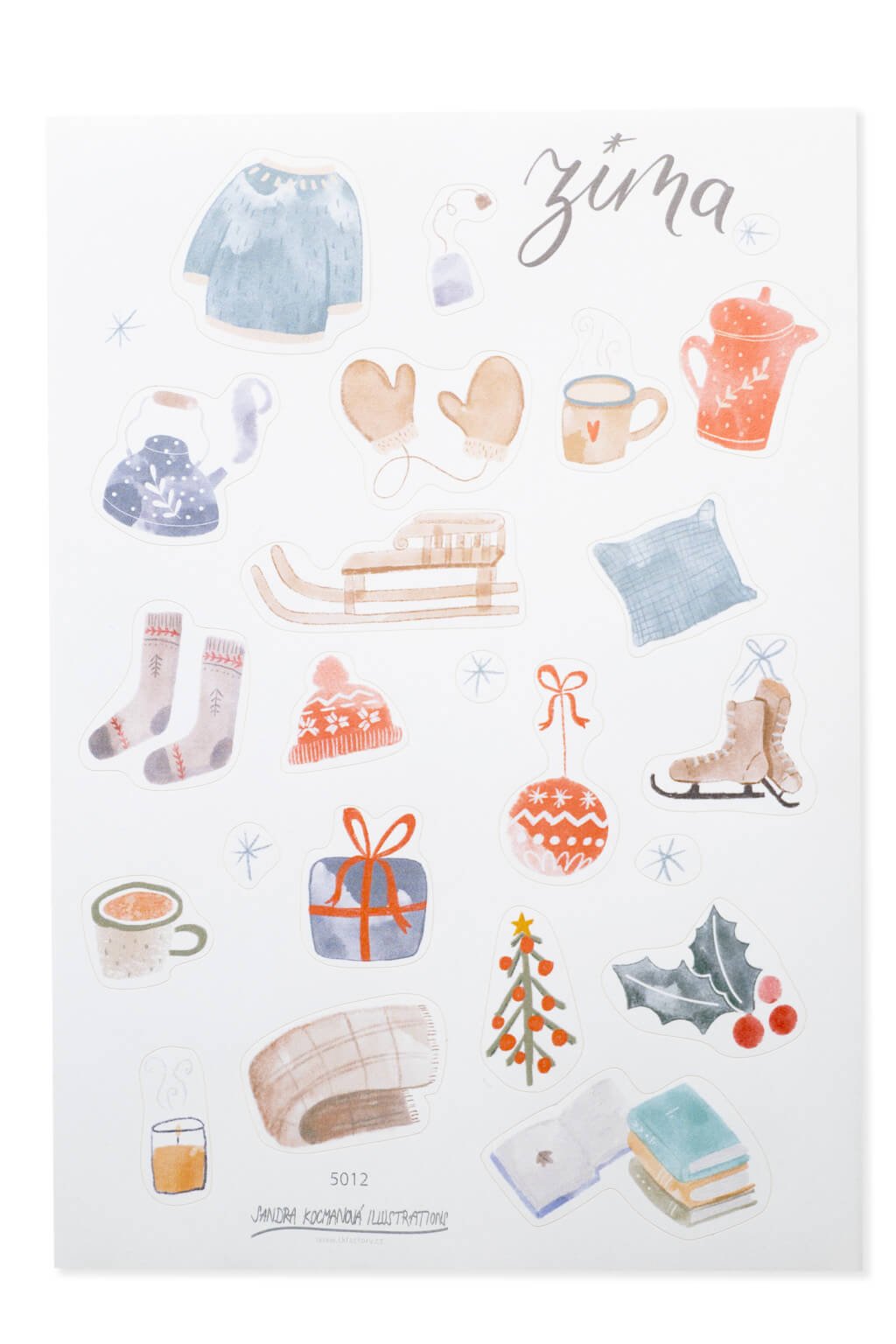 Pro milovníky zimy, teplých čajů a šál je tu skvělá novinka – samolepky na archu velikosti A5!