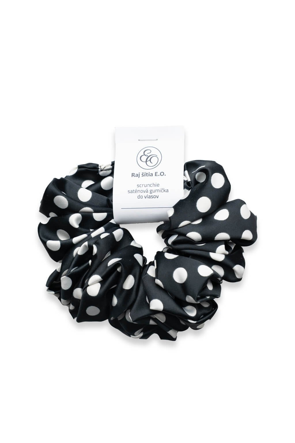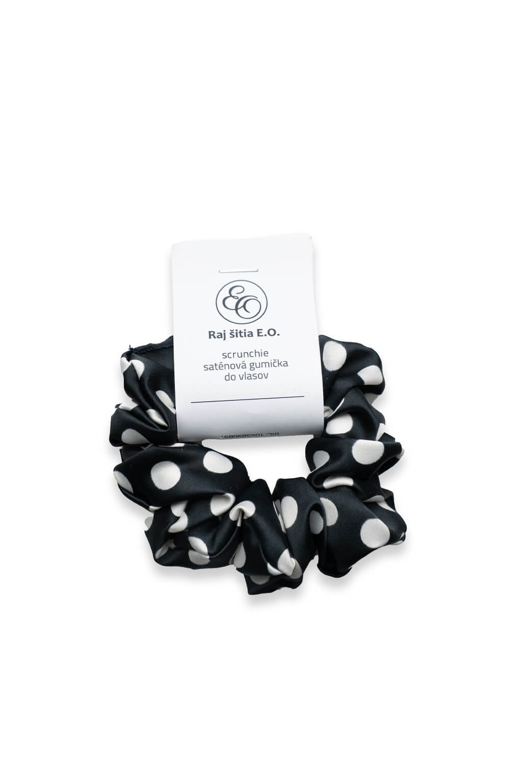 Saténová gumička v černé barvě s bílými puntíky dodá vašemu účesu eleganci, hravost i šetrnou péči. Hebký materiál vlasy netahá ani neláme a zároveň skvěle drží. Je to stylový doplněk pro každý den.