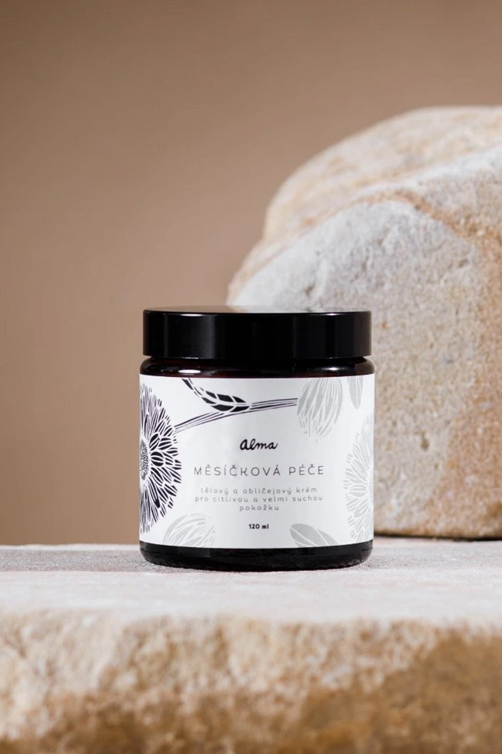 Jemně šlehané máslo s vysokým podílem extraktu měsíčku, který si v Almě sami vyrábí podle tradičních receptur. Zmírní případné ekzematické problémy, pomůže pokožku hloubkově vyživit, podrží v ní hydrataci a také zjemní velmi suchou až šupinatou kůži.