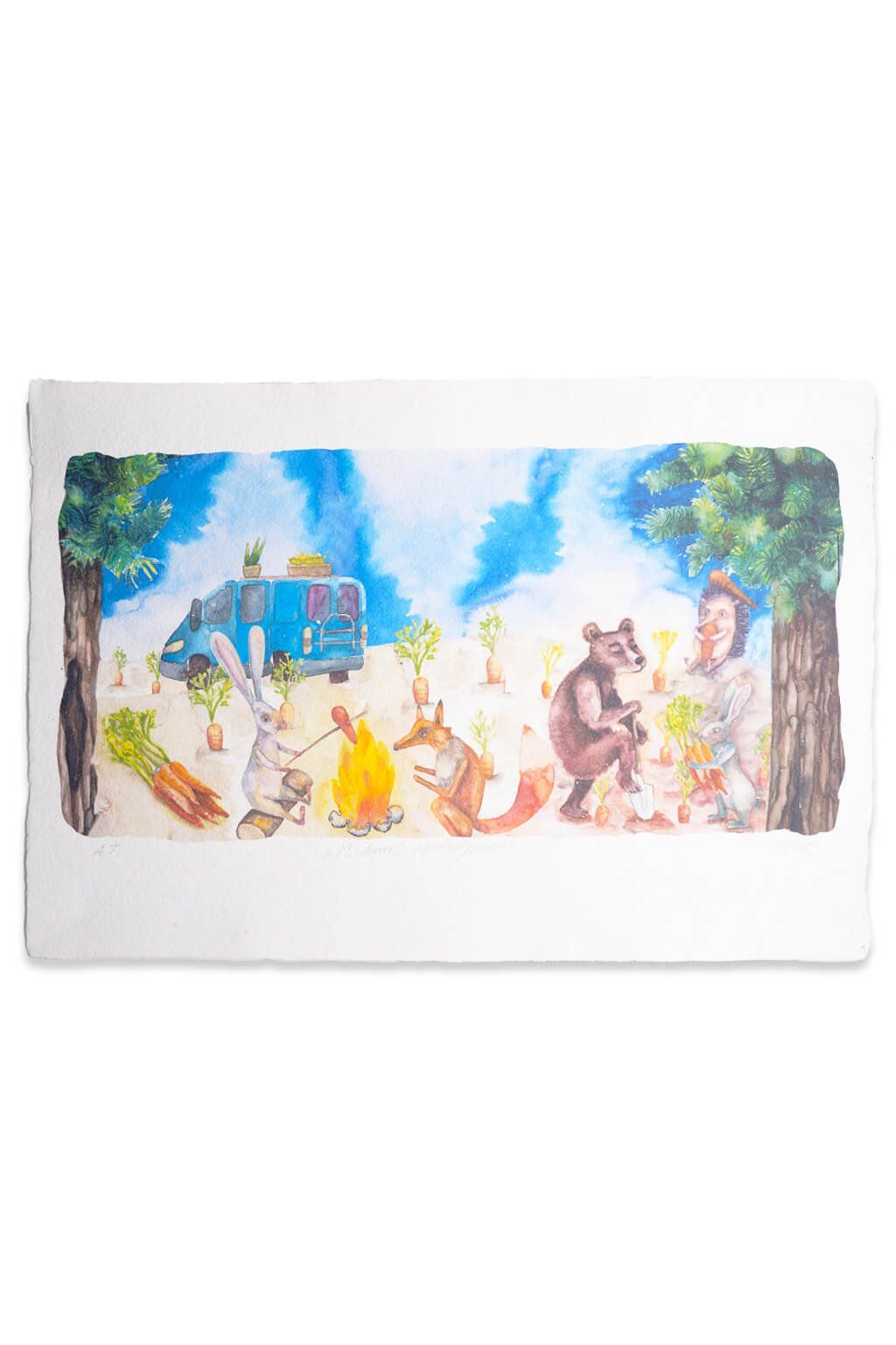 - Jemná akvarelová malba na ručním papíře.