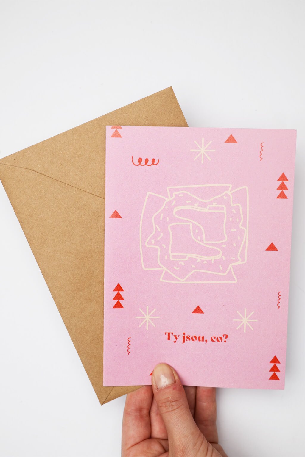 Originální motiv na přání vytvořila česká výtvarnice Bára z Nikolajky a inspirací ji byl český film Pelíšky.