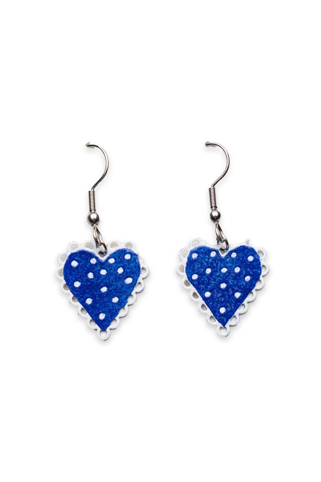 Visací náušnice s motivem modrých srdíček jsou elegantním a originálním doplňkem, který okouzlí jemným designem.