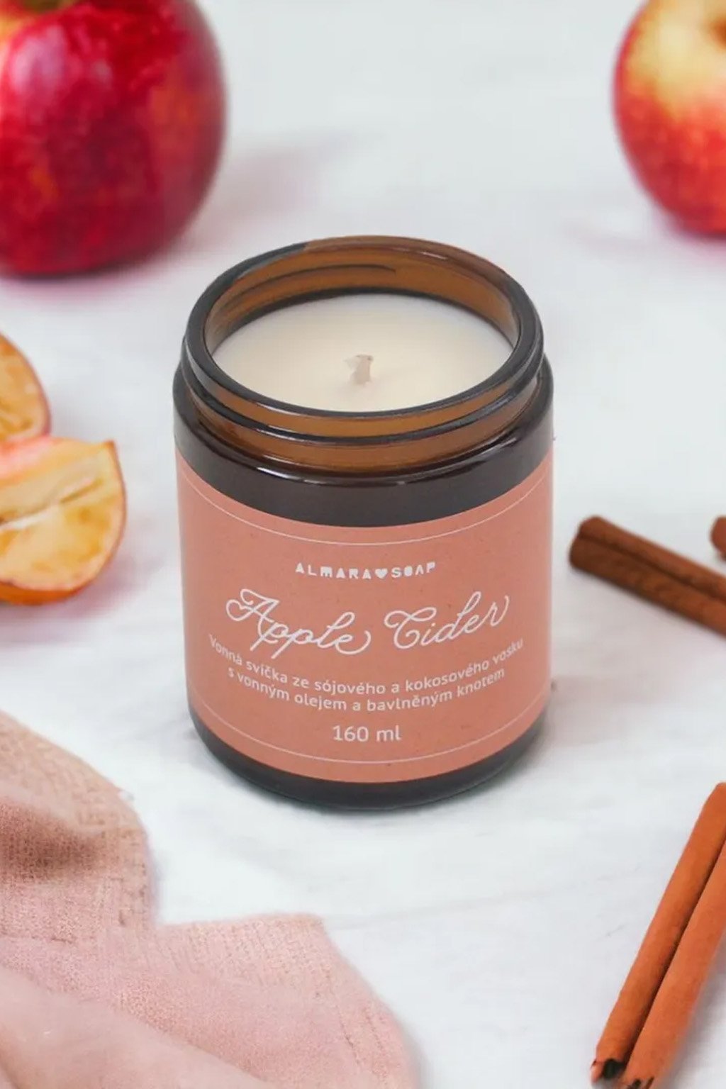Vonná svíčka s vůní jablíček a skořice.