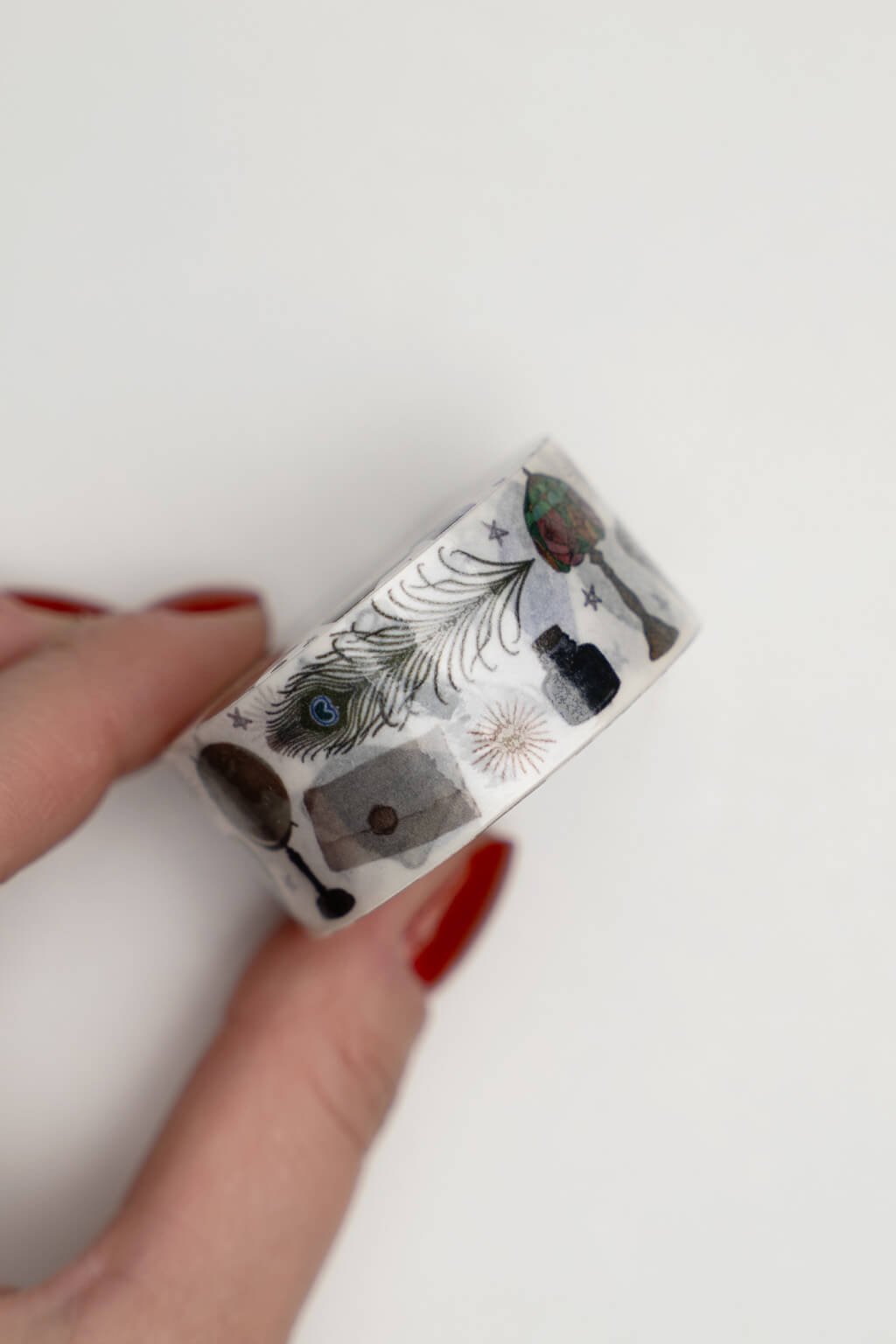 Autorská washi páska v duchu Dark Academia pro všechny milovníky vůně starých knih, nostalgie a pozdního světla dopadajícího na zaprášené stoly.