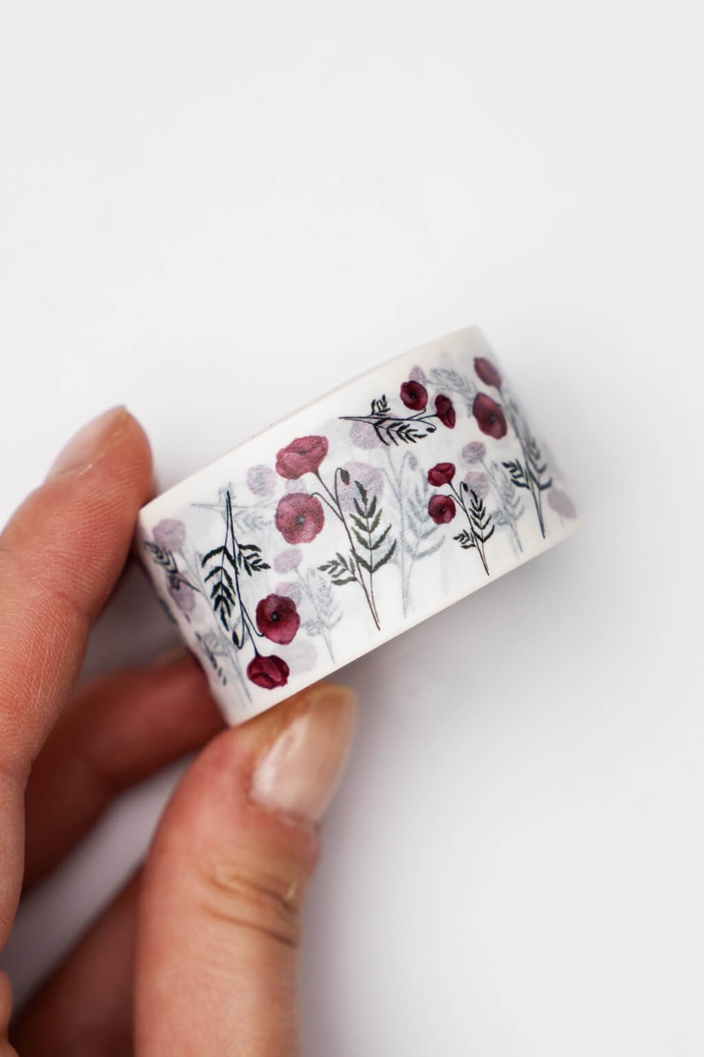 Kvalitní lepicí páska z rýžového papíru, kterou lze snadno sloupnout a nepoškodit tím papír či jiný povrch. Autorský design vlčího máku z papírnictví Be Nice.