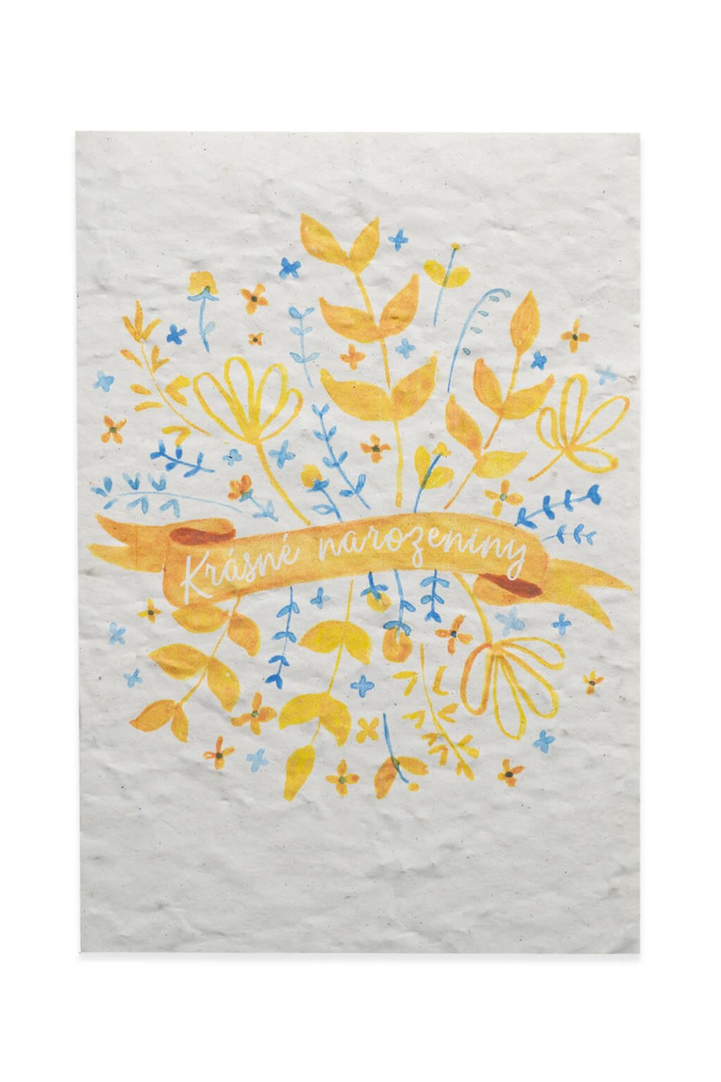 Toto živé přáníčko s motivem modrých a žlutých květin a nápisem „Krásné narozeniny“ přináší nejen krásné přání, ale i možnost vypěstovat si vlastní kousek přírody.